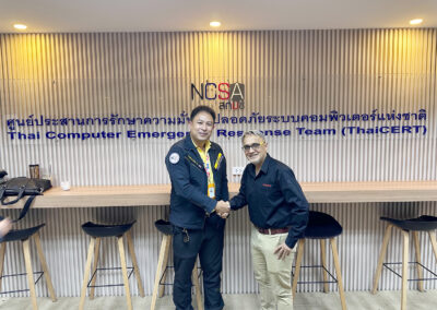 เมื่อวันที่ 10 กุมภาพันธ์ 2568 ดร.ชาร์ล ซิง (Dr.h.c. Charles Singh) Regional Director Thailand จาก EC-Council ได้รับเกียรติเป็นผู้มอบรางวัล Lucky Draw ให้แก่ผู้โชคดี คุณพงศ์ชนินทร์ สกุลรัตนศักดิ์ เจ้าหน้าที่กลุ่มวิชาชีพเฉพาะด้านเทคโนโลยีสารสนเทศและการสื่อสาร โดยมี พ.ต.อ.ปัญญา สิงห์ไชย ผู้อำนวยการสำนักบริหารกลาง ยืนร่วมแสดงความยินดี ภายในงาน Cybersec Asia 2025 ที่จัดขึ้น ณ สำนักงานคณะกรรมการการรักษาความมั่นคงปลอดภัยไซเบอร์แห่งชาติ (สกมช.)