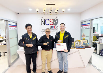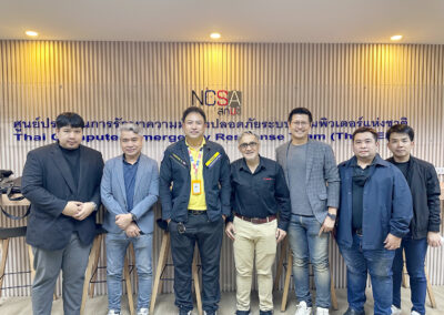 บรรยากาศในงานเต็มไปด้วยความตื่นเต้นและพลังของผู้เข้าร่วมที่มารวมตัวกันเพื่อแลกเปลี่ยนความรู้ด้านความมั่นคงปลอดภัยไซเบอร์ พร้อมอัปเดตเทคโนโลยีใหม่ล่าสุด การมอบรางวัล Lucky Draw ครั้งนี้ถือเป็นอีกหนึ่งช่วงเวลาสำคัญ ที่สร้างทั้งรอยยิ้มและความประทับใจให้แก่ผู้เข้าร่วมงาน และได้มีการถ่ายภาพร่วมกับ เรือโท ธีรพล หนองหว้า ผู้อำนวยการฝ่ายบริหารจัดการข้อมูลภัยคุกคามทางไซเบอร์ สำนักประสานงาน สกมช.